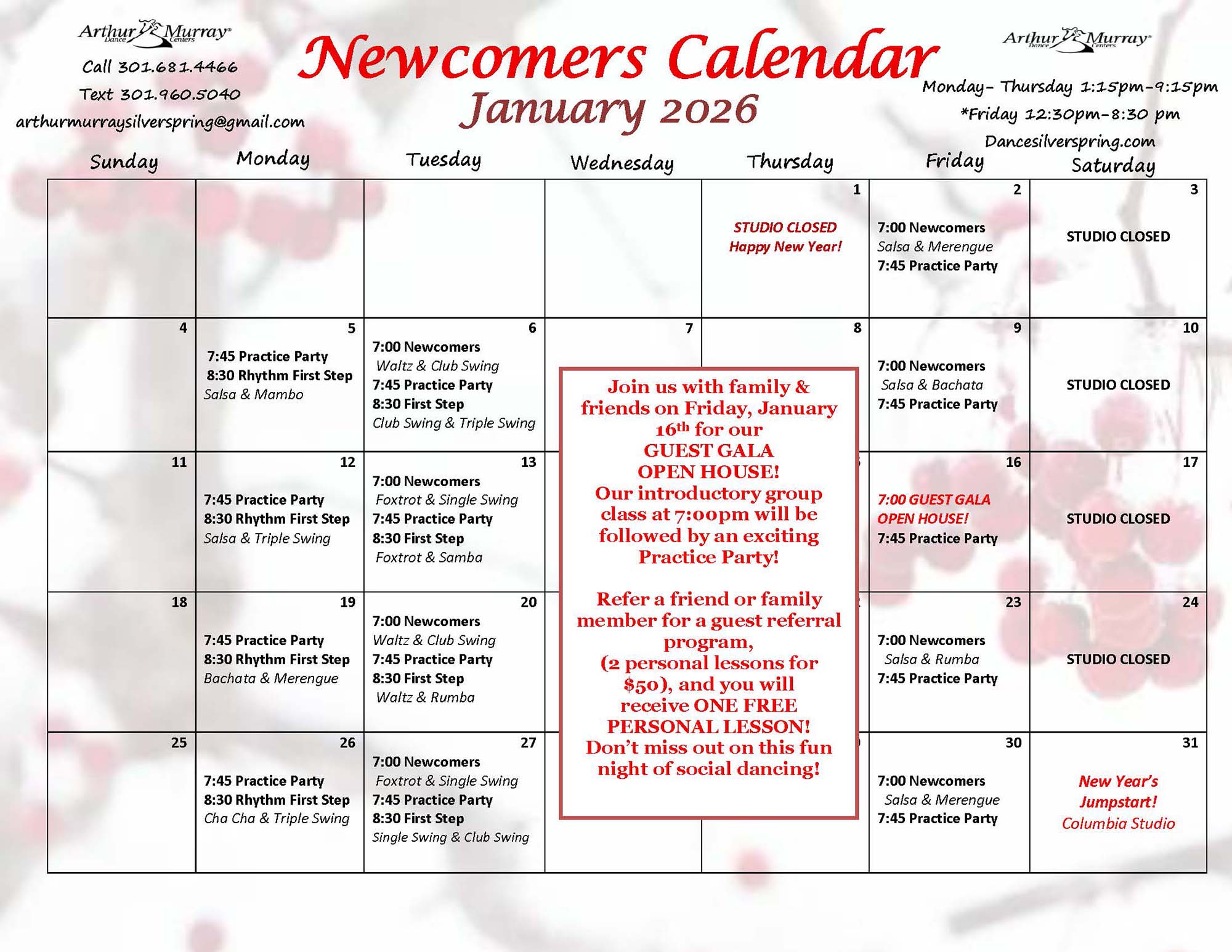 See The Latest Upcoming Events in Our Studio